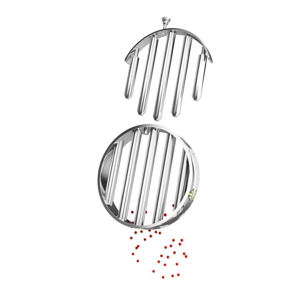Magnetický rošt, určený výhradně pro průmyslové použití, zajistí dokonalé vyčištění vašich suchých směsí od feromagnetických nečistot (pojmem feromagnetické nečistoty myslíme plně magnetické kovy jako železo, nikl, kobalt a slitiny obsahující železo nikoliv paramagnetické, velmi jemně magnetické materiály).