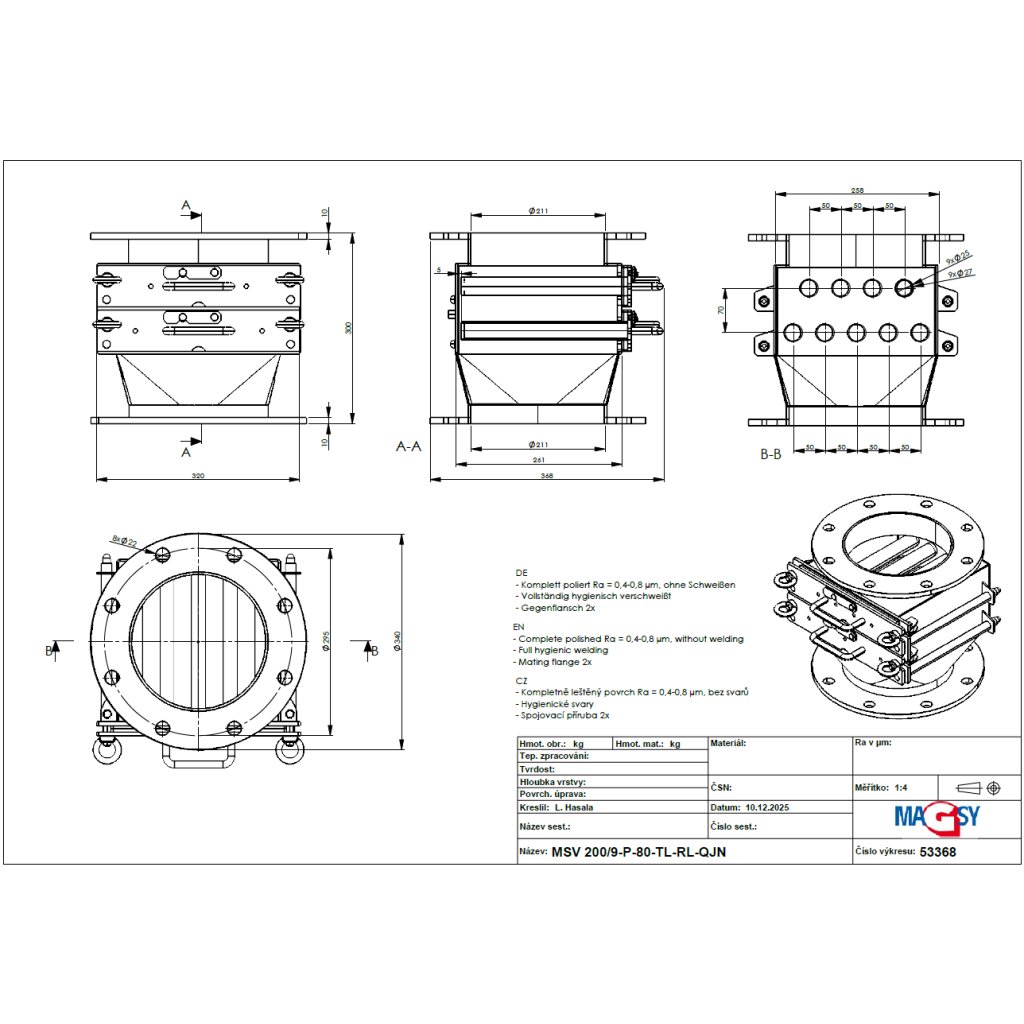 | Materiál: | Nerezová ocel DIN 1.4301, EN 10088, ČSN 17240, AISI 304, AKV 7 – ocel chrom niklová austenitická nestabilizovaná (X5CrNi 18-10) |