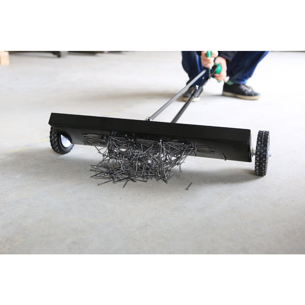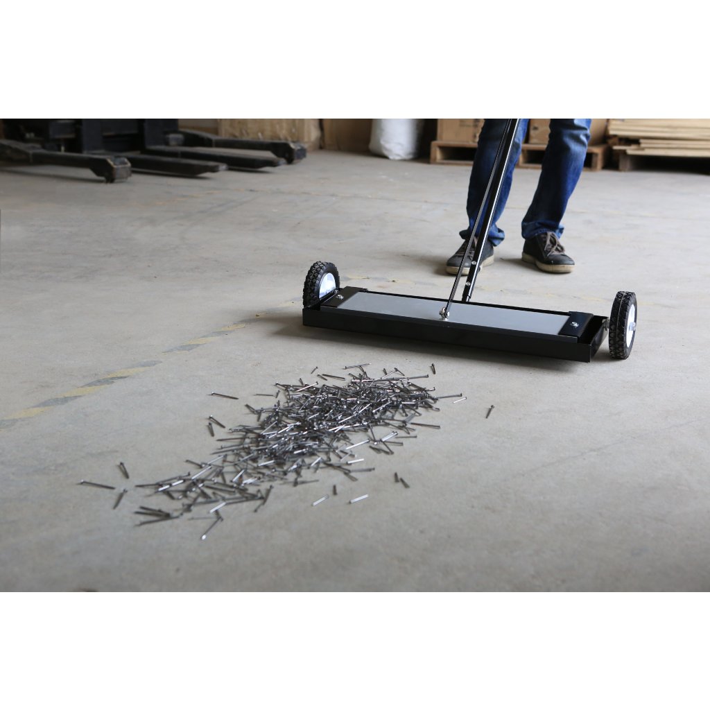 Magnetická metla s duralovým tělem s hladkou povrchovou úpravou. Je opatřena feritovými magnety, které dovedou posbírat kovové předměty – šrouby, matice, plíšky, podložky, vruty, ocelové třísky, sponky do sešívačky nebo kancelářské sponky až do maximální výšky 25 mm. Délka magnetické plochy je dostatečných 60 cm.