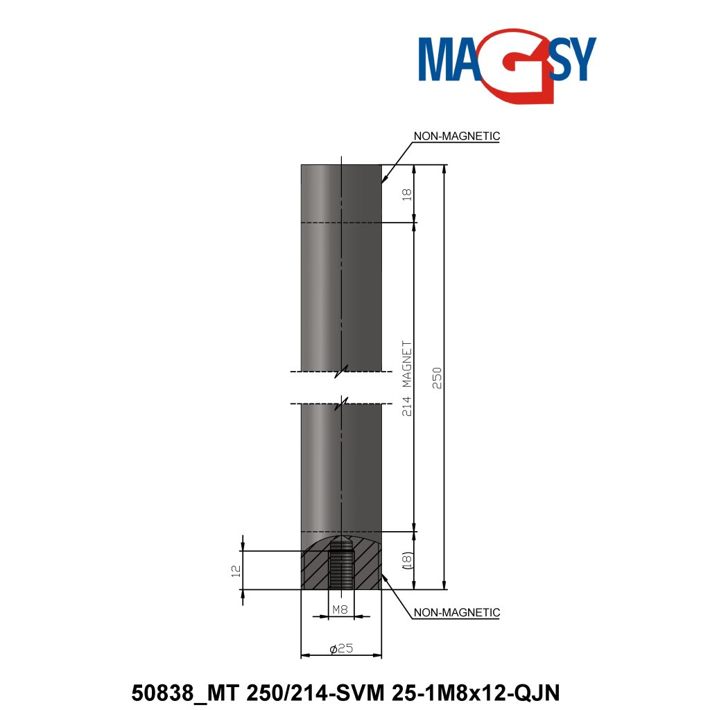 Magnetická tyč - NdFeB pr.25 x 250 mm, 14.500 Gs, 95 N, 80 °C